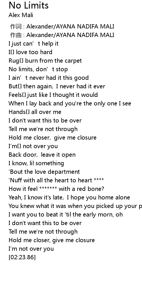 | [00:40.41] | No limits, don' t stop |