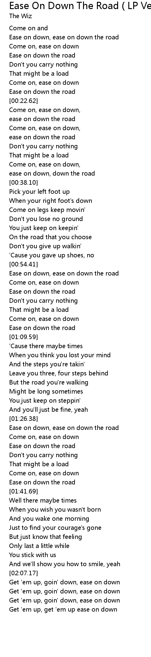 | [00:36.06] | ease on down, down the road |