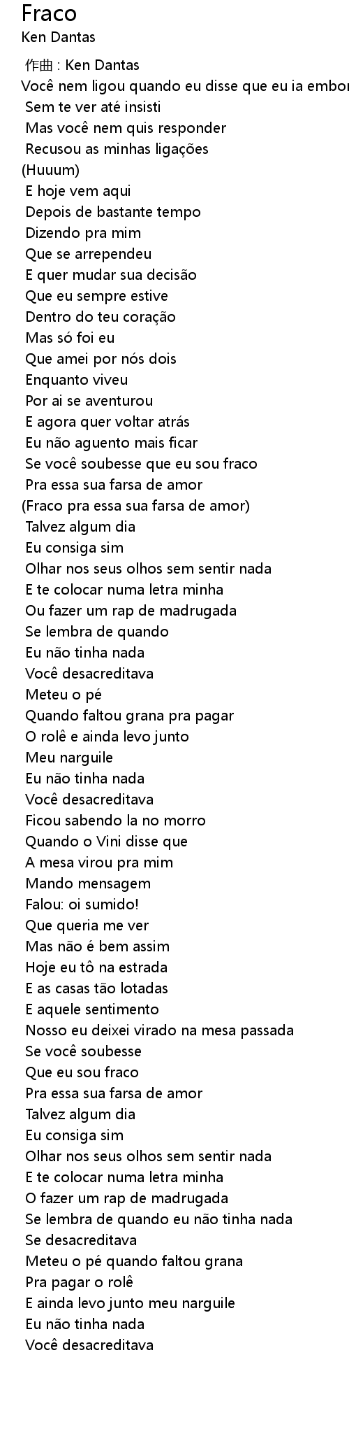 | [01:11.000] | (Fraco pra essa sua farsa de amor) |