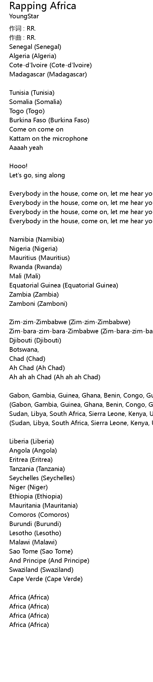 | Song | Rapping Africa |