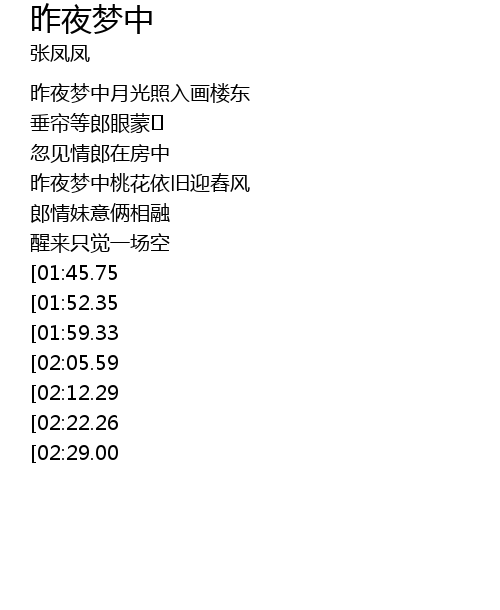 | [03:31.36][02:12.29] | 今夜梦中但愿情郎再入梦 |
