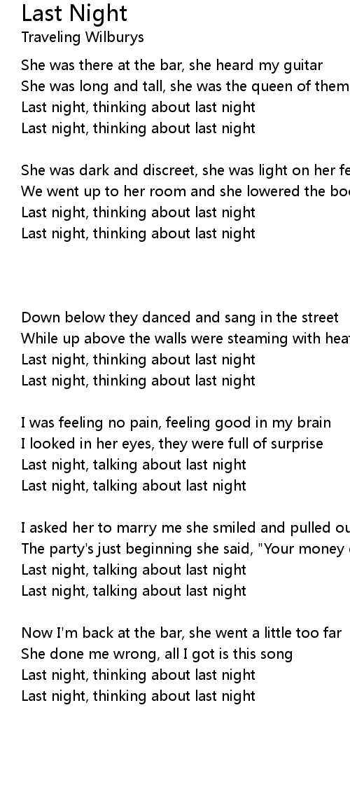Last night, thinking about last night |
