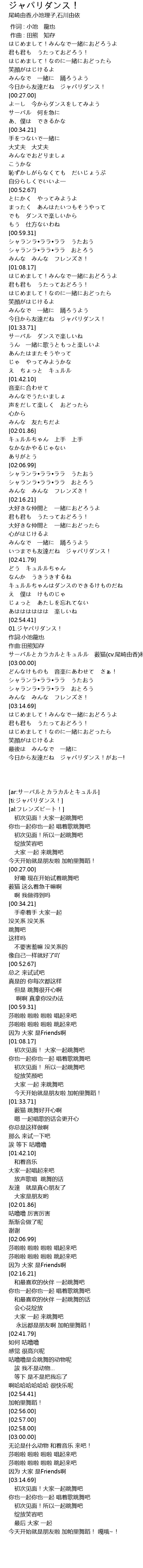 | [03:19.46] | はじめまして!みんなで一緒におどろうよ |