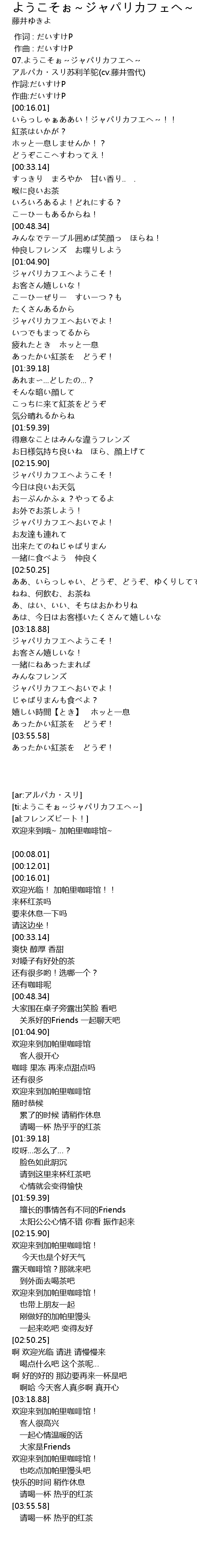 | [02:16.44] | ジャパリカフエへようこそ! |
