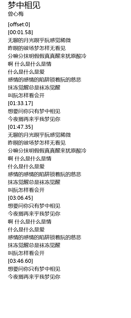 | [01:40.15] | 今夜搁再来乎我梦见你 |