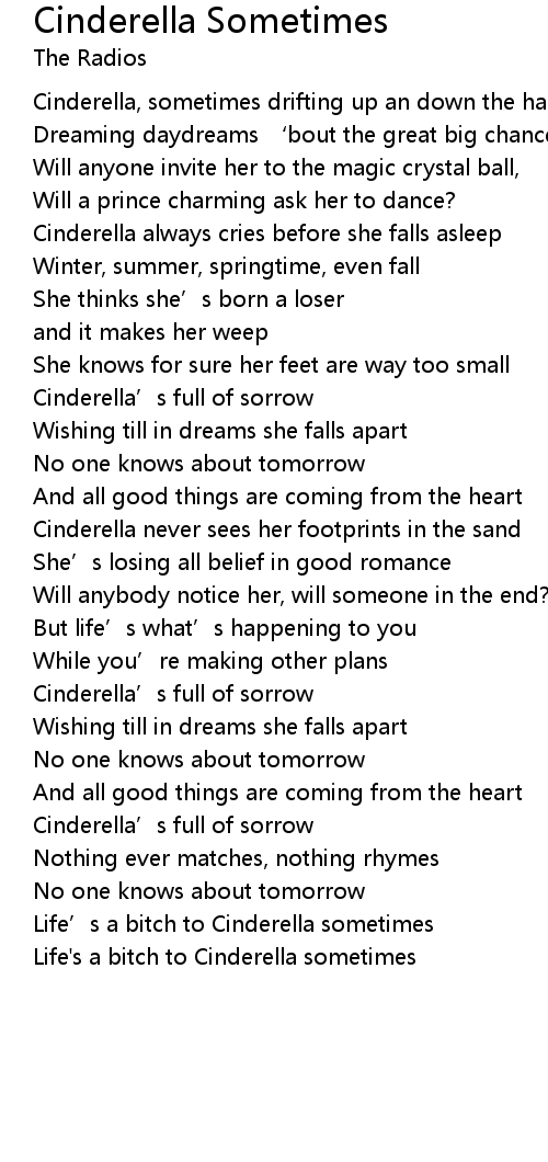 | Life' s a bitch to Cinderella sometimes |