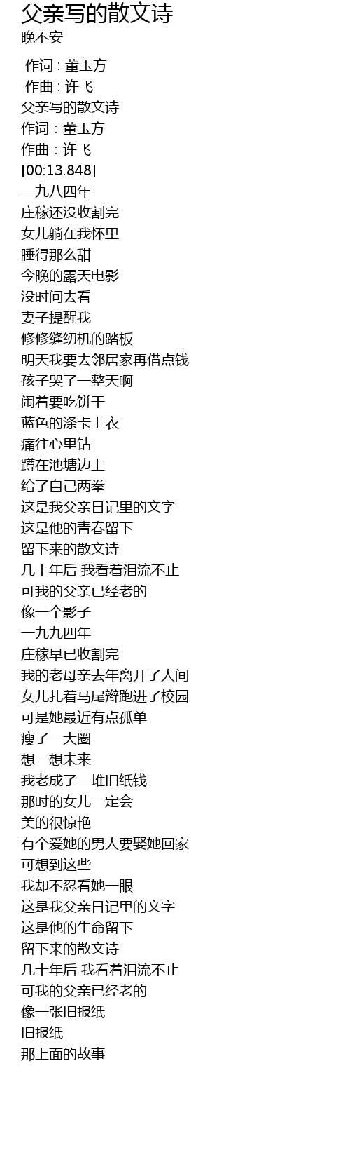 | [00:06.348] | fù qīn xiě de sǎn wén shī |