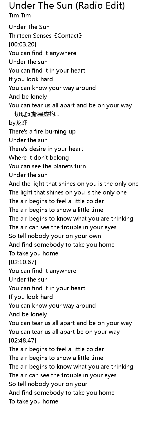| [00:02.50] | Thirteen Senses《Contact》 |