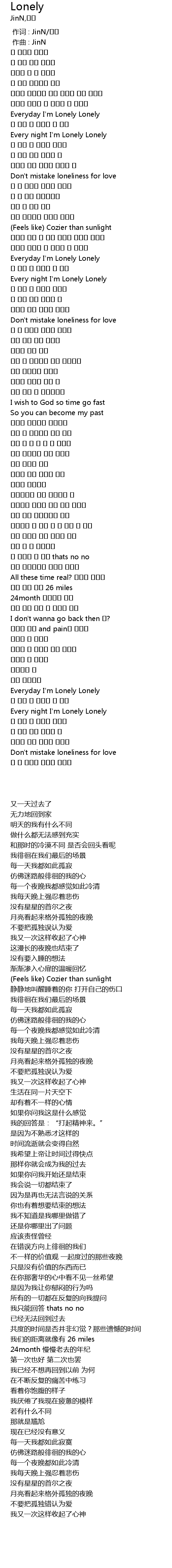 | [01:36.137] | Everyday I'm Lonely Lonely |