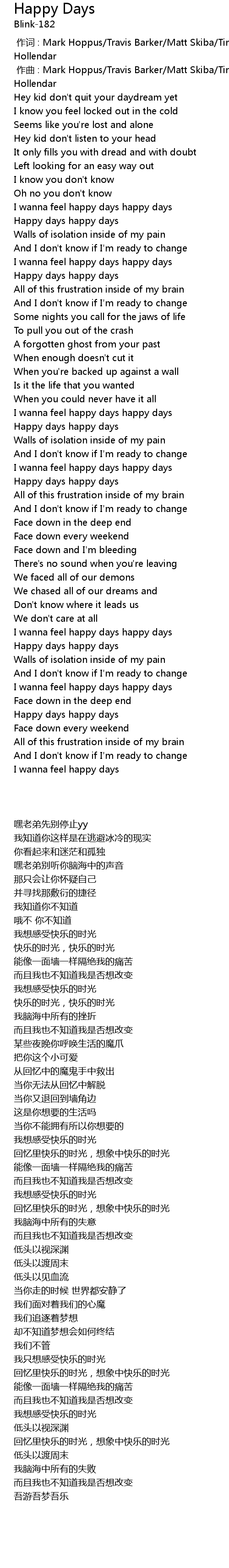| [00:00.00] | zuò cí : Mark Hoppus Travis Barker Matt Skiba Tim Pagnotta Sam Hollendar |