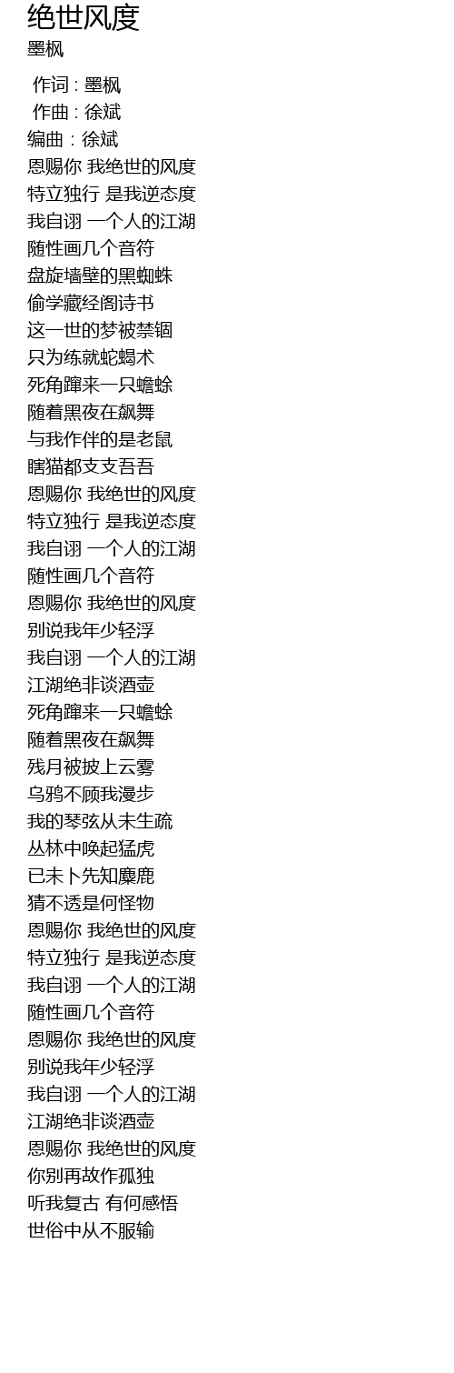 | [00:15.07] | 我自诩 一个人的江湖 |
