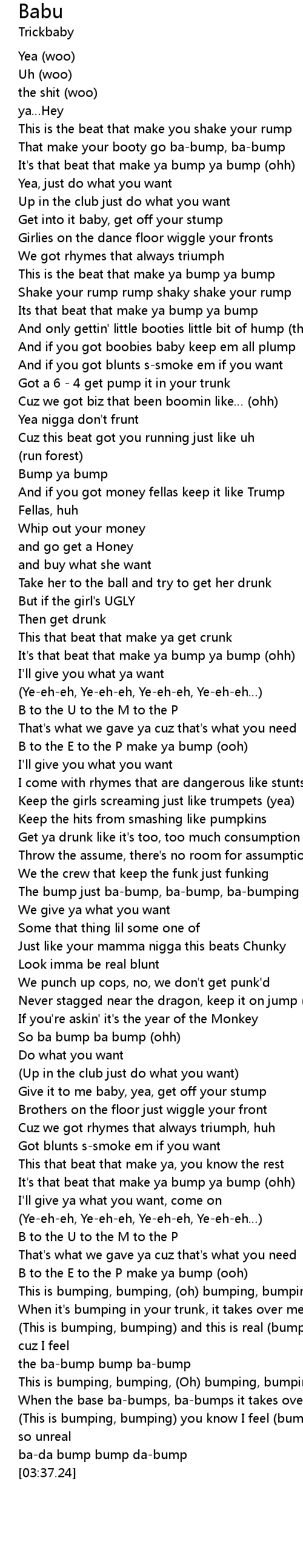 | [00:34.50] | Its that beat that make ya bump ya bump |