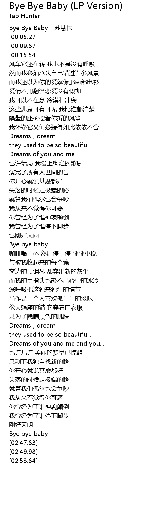 | [00:02.32] | Bye Bye Baby - 苏慧伦 |