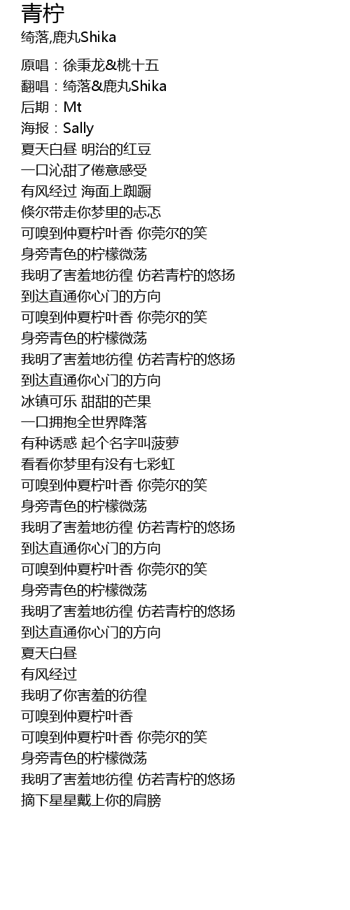 | [02:41.47] | 可嗅到仲夏柠叶香 |