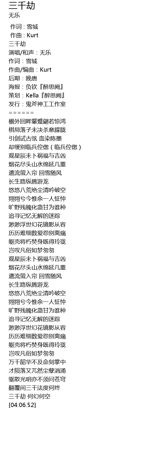 | [02:04.22] | 悠悠八荒绝尘清吟破空 |