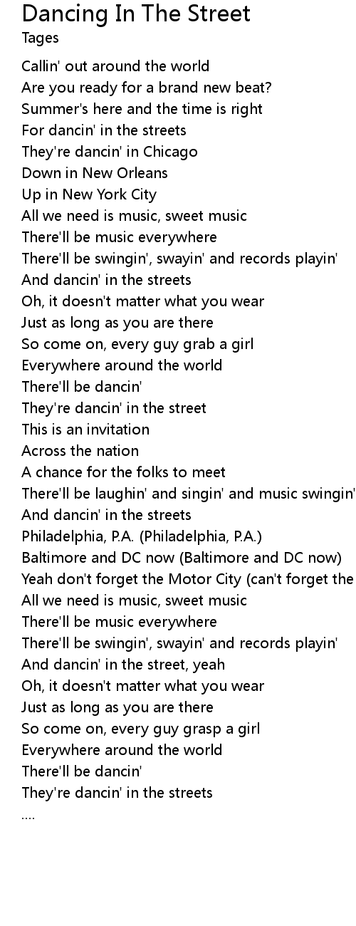 | [01:25.19] | And dancin' in the streets |