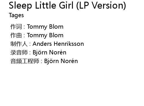 | [00:00.000] | 作词 : Tommy Blom |