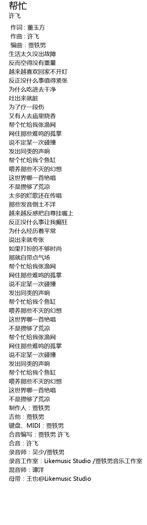 | [02:51.144] | 合音编写:贾轶男 许飞 |