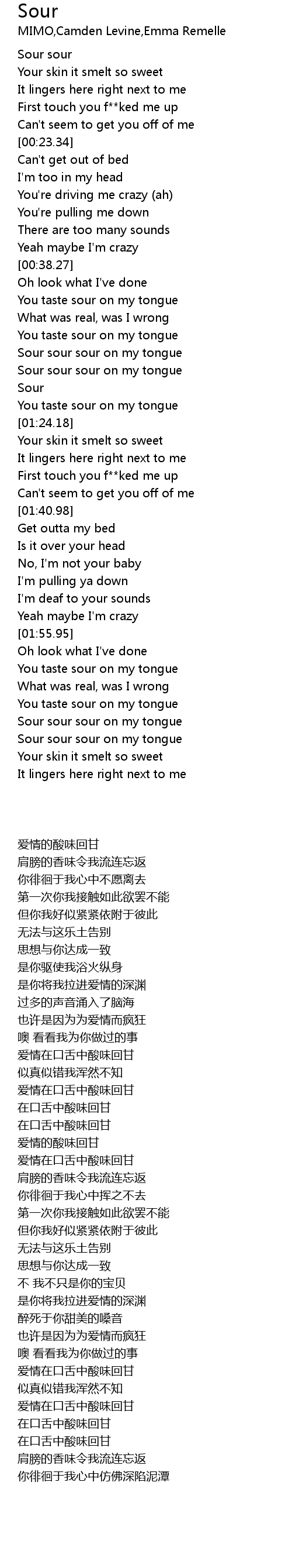Sour sour sour on my tongue |