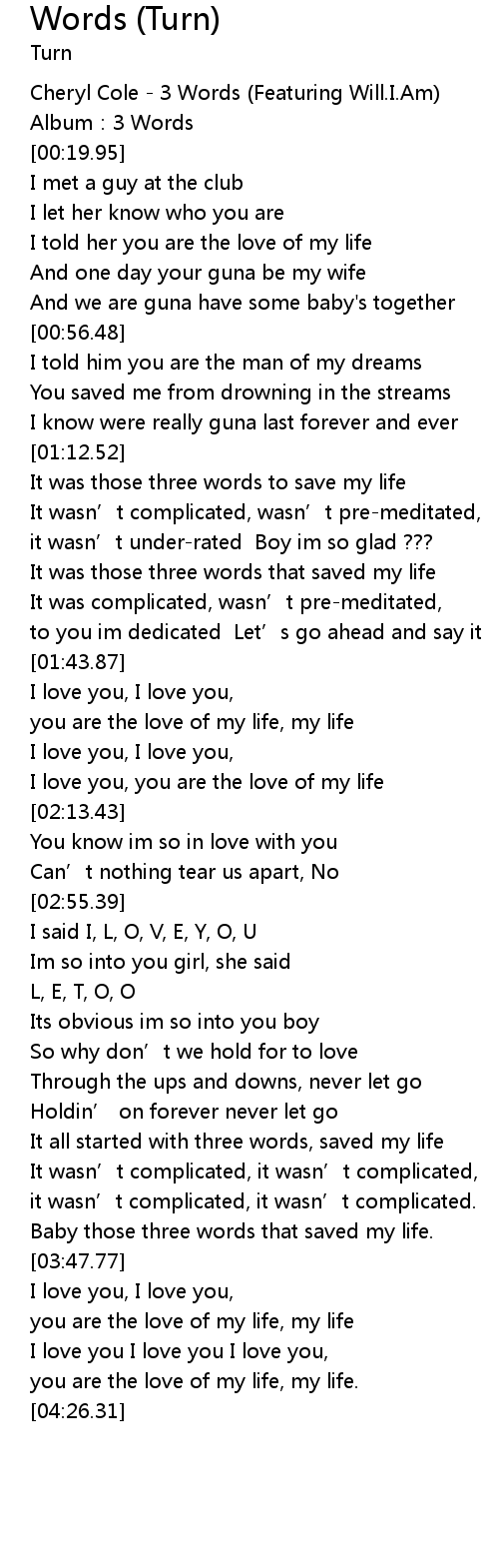| [03:41.37] | Baby those three words that saved my life. |