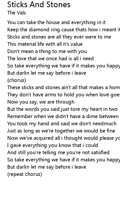 Sticks and stones are all they ever were to me |