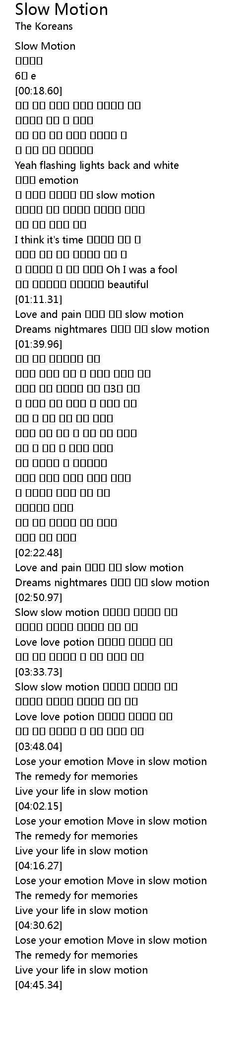 | [04:02.54] | Lose your emotion Move in slow motion |