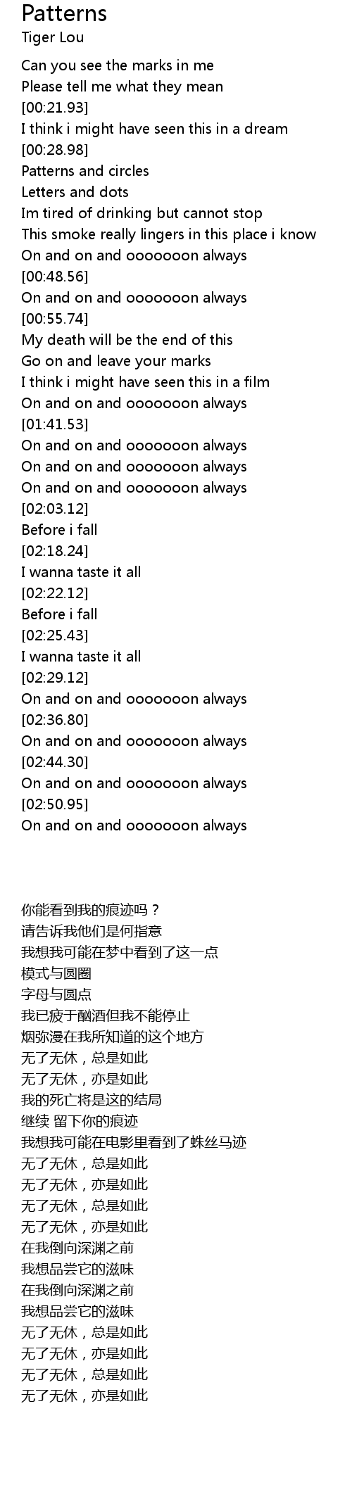 | [00:33.10] | Im tired of drinking but cannot stop |
