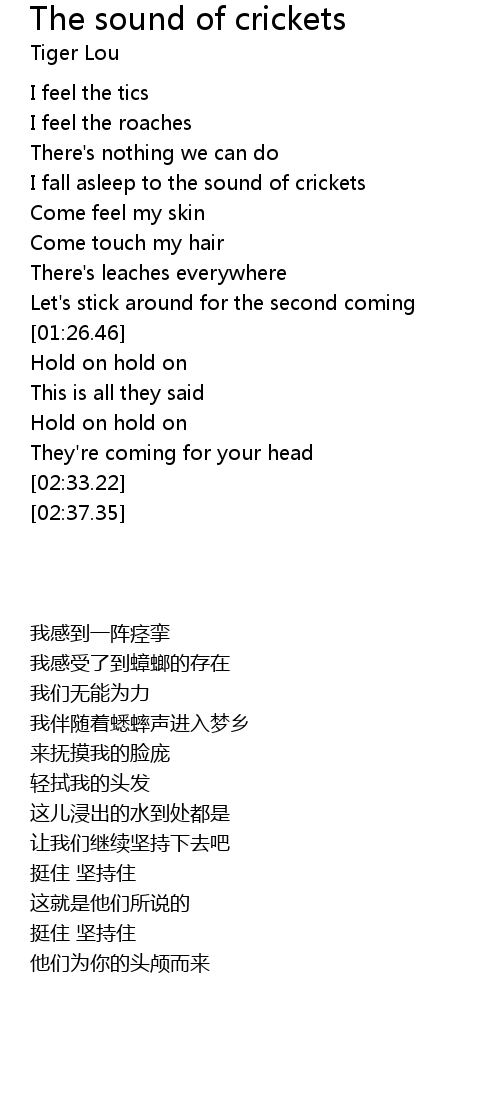| [00:54.85] | I fall asleep to the sound of crickets |