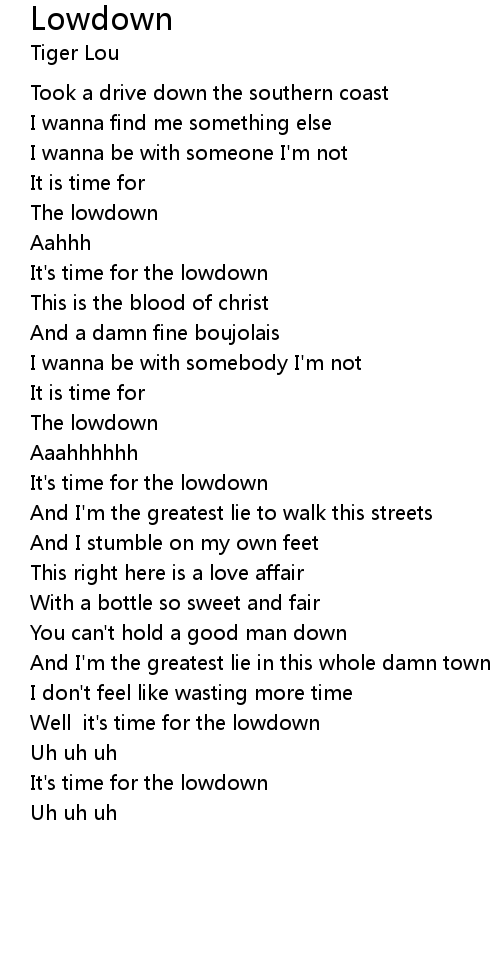 Well it's time for the lowdown |