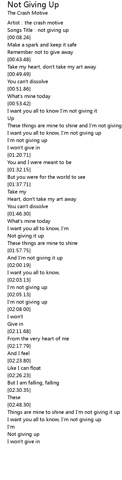 | [02:03.93] | I'm not giving up |