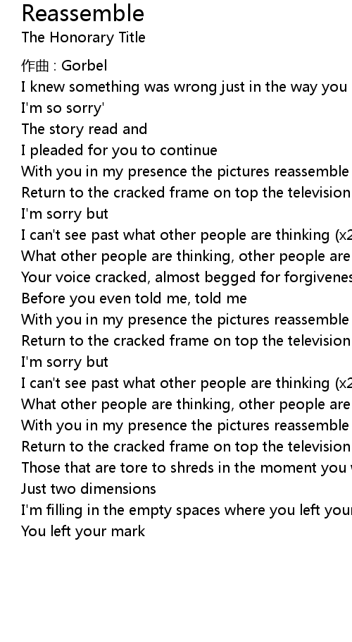 | Those that are tore to shreds in the moment you were in two dimensions (x2) | |