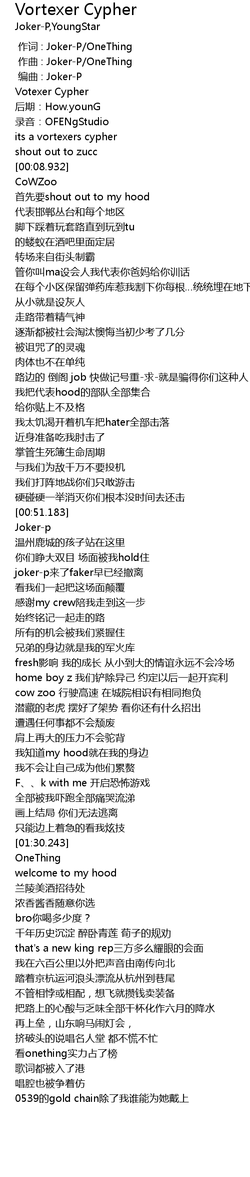 | [00:00.000] | 作词 : Joker-P/OneThing |