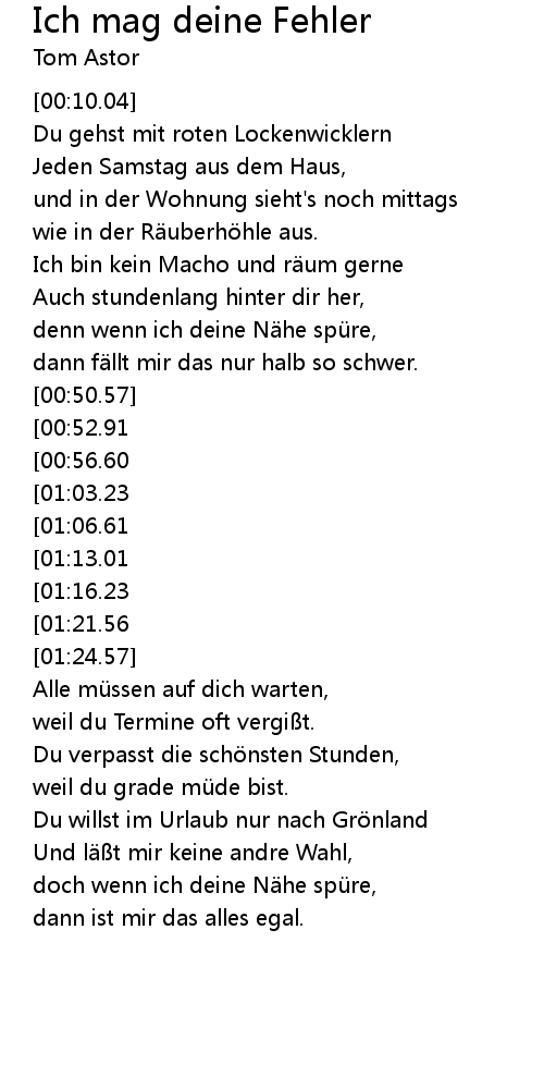 | [02:17.30][00:52.91] | Ich mag deine Fehler, |