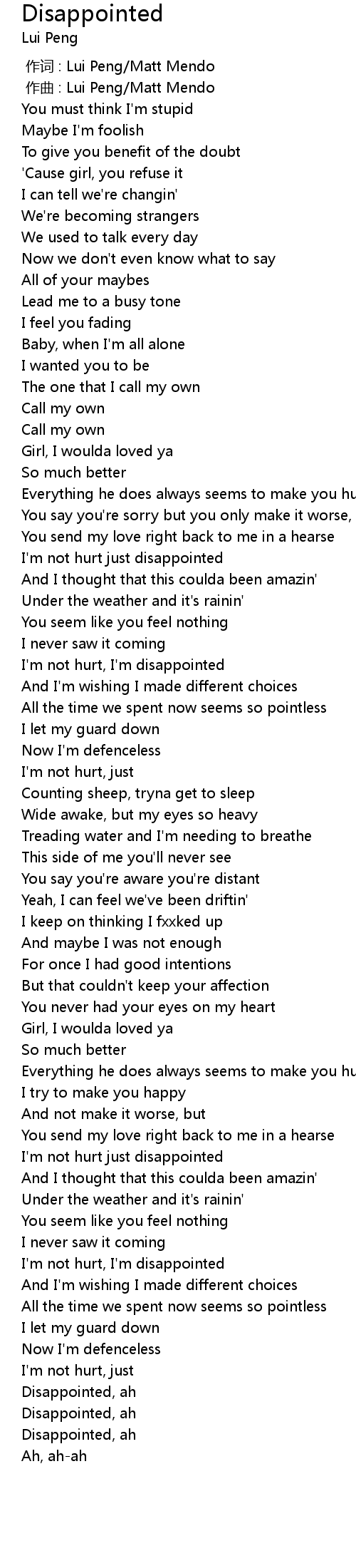 | [00:48.34] | I'm not hurt just disappointed |
