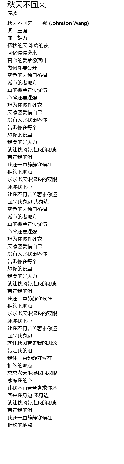 | [00:01.905] | qiū tiān bù huí lái wáng qiáng Johnston Wang |