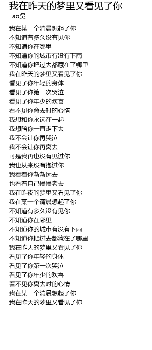 | [02:46.840] | 我在昨天的梦里又看见了你 |