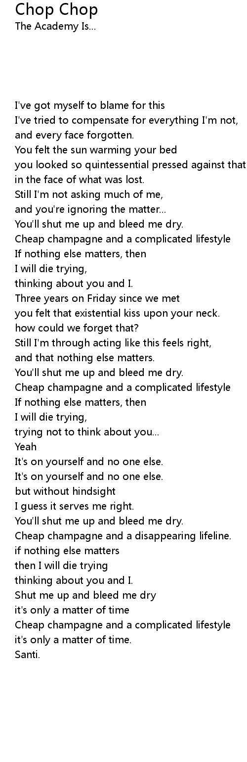 | [02:59.53] | Cheap champagne and a complicated lifestyle |