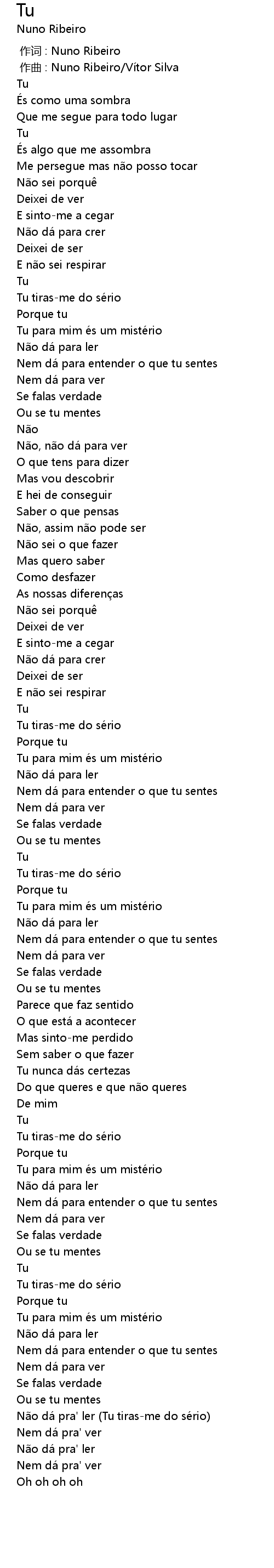 | [00:01.00] | 作曲 : Nuno Ribeiro/Vítor Silva |