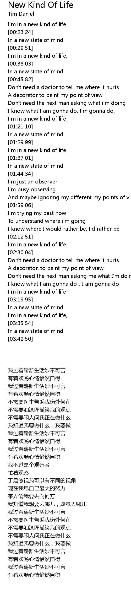 | [03:14.19] | I' m in a new kind of life |