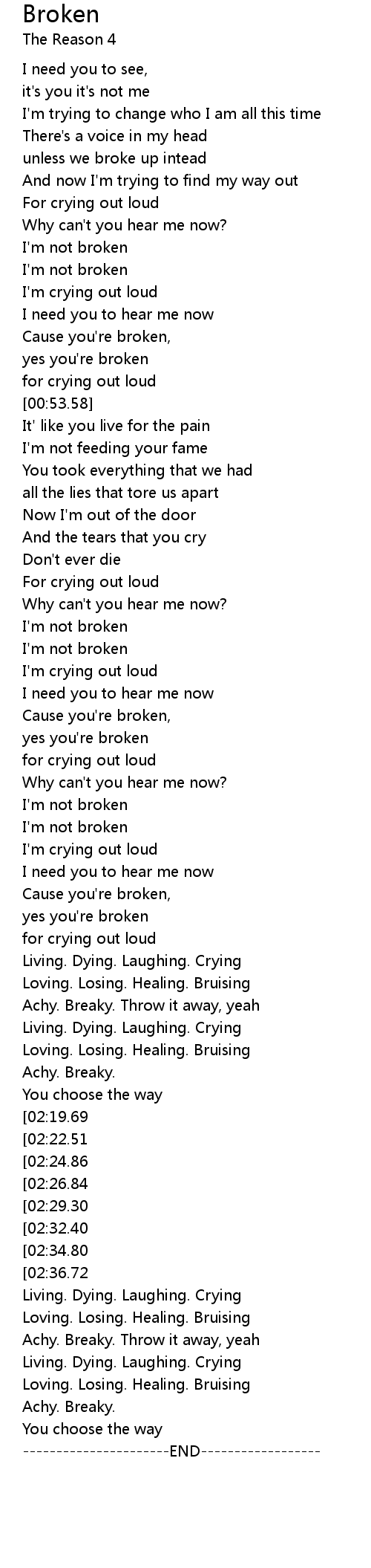 Cause you're broken, |