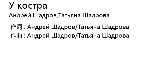 | [00:00.00-1] | 作曲 : Андрей Шадров/Татьяна Шадрова |
