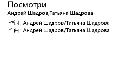 | [00:00.00-1] | 作曲 : Андрей Шадров/Татьяна Шадрова |