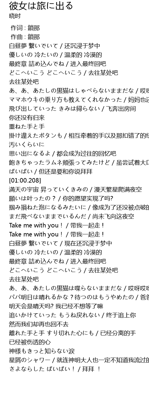 | [01:32.560] | 満天の宇宙 昇っていくきみの/漫天繁星爬满夜空 |