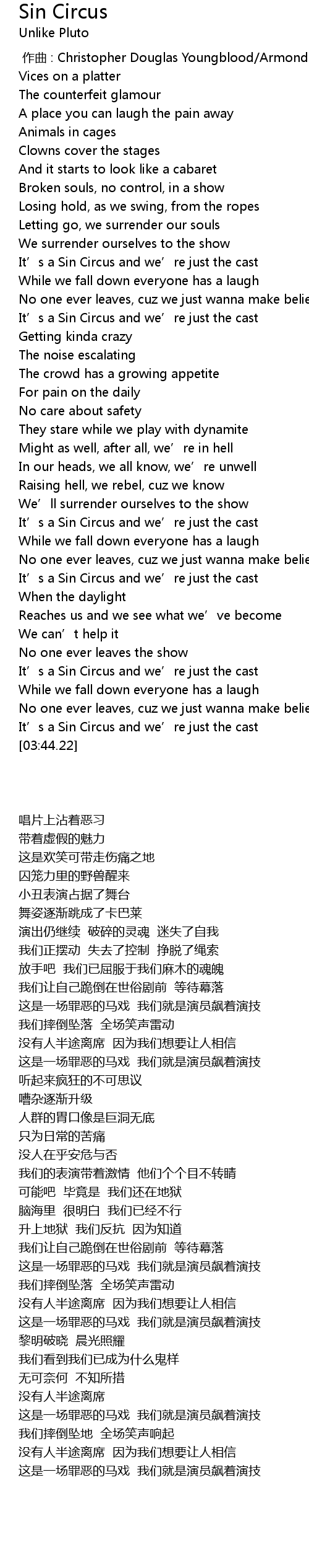 | [03:38.87] | It’s a Sin Circus and we’re just the cast |