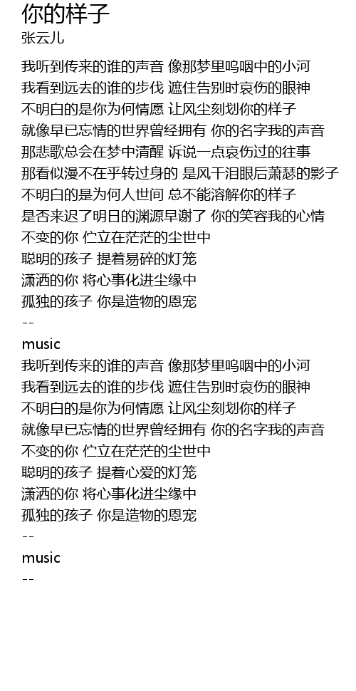 | [00:17.140] | 我听到传来的谁的声音 像那梦里呜咽中的小河 |