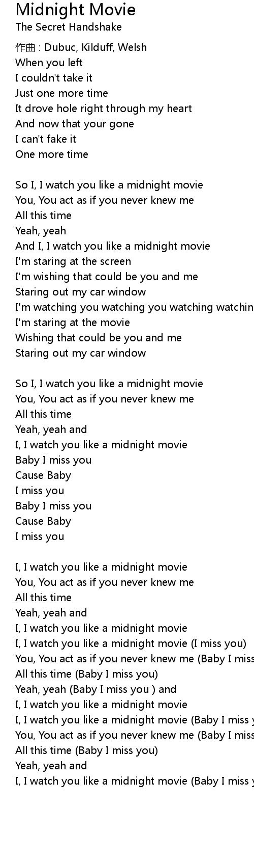 | So I, I watch you like a midnight movie | |