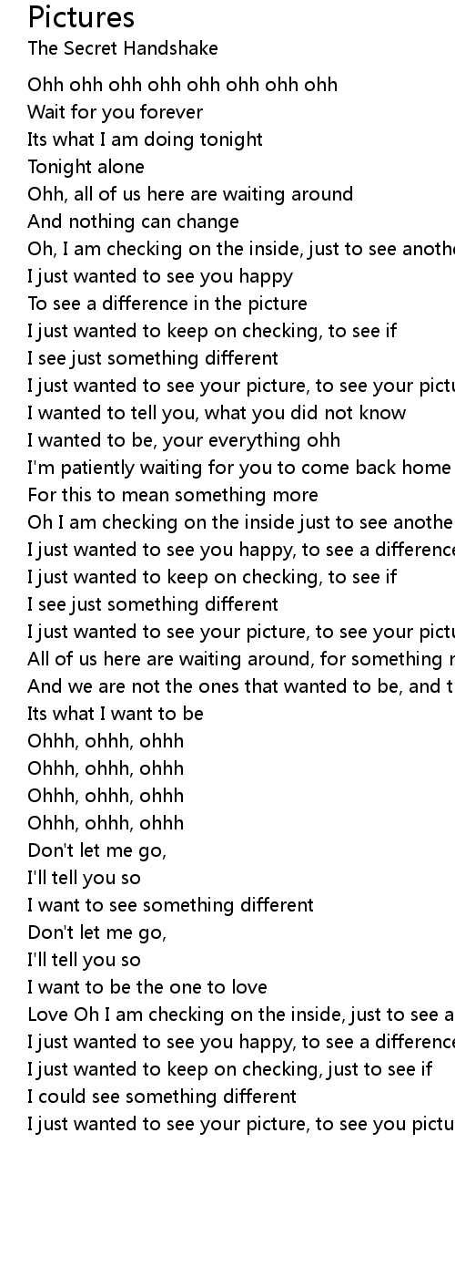 I just wanted to see your picture, to see your picture ohh ohhh |
