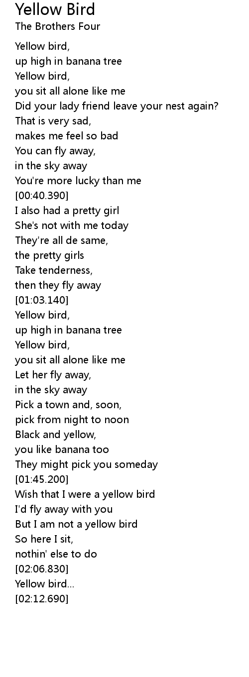 | [00:20.280] | Did your lady friend leave your nest again? |