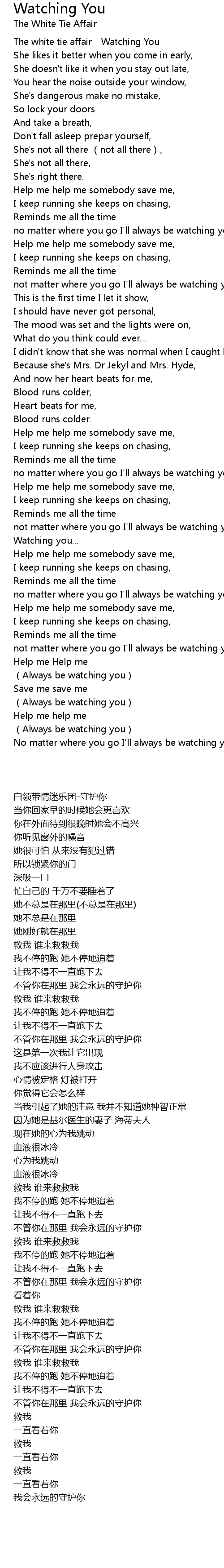 | [00:04.21] | The white tie affair - Watching You |