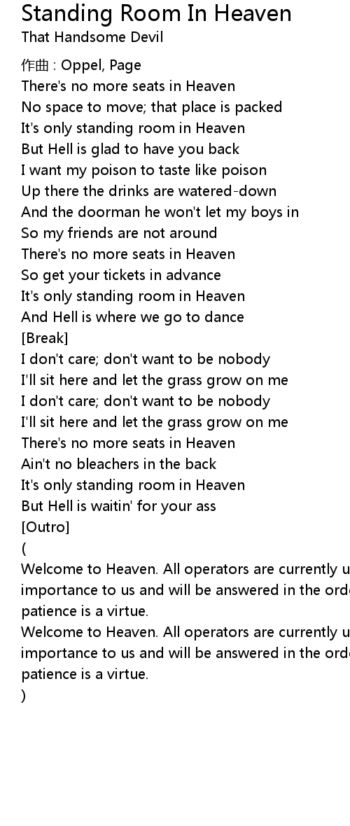 | It's only standing room in Heaven | |
